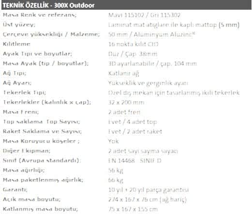 300X outdoor masası her türlü hava şartlarına dayanır. Tek avantajı bu da değildir. Üst yüzeyi 6 mm mat antiglare kaplıdır. Güneş altında kalsa bile etkilenmez. Mükemmel esnekliktedir.